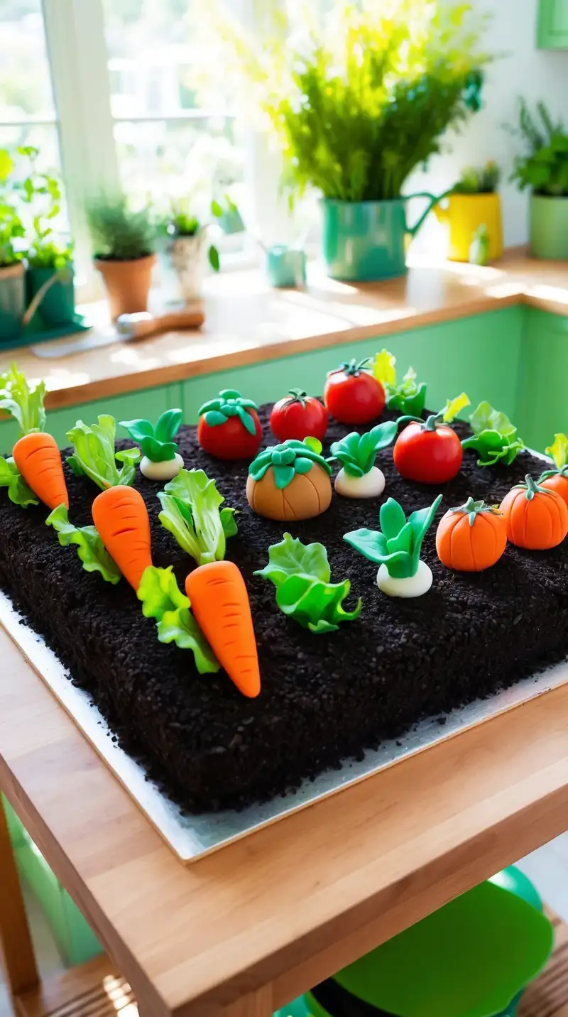 What about a vibrant cake that looks like a garden filled with fondant vegetables? Everyone can marvel at the bright colors and textures. “This is so cute!” one friend says, reaching out to touch a fondant carrot. It sparks conversations about summer gardens and the best recipes.