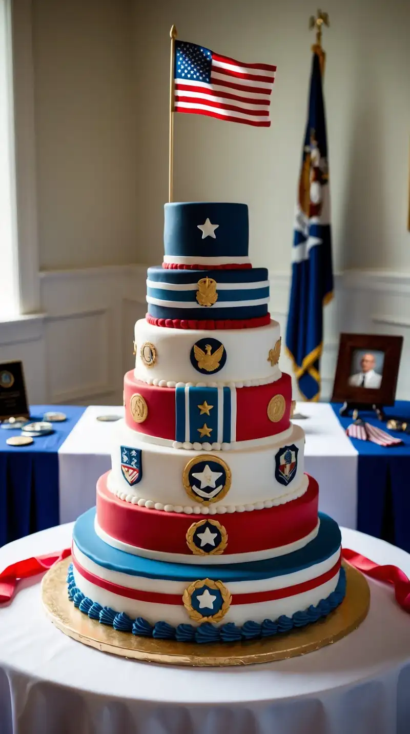 A cake that honors service and dedication? That’s powerful! The layers reflect pride and respect, making everyone feel important. “What an amazing tribute,” someone might whisper, moved by the details. Each slice celebrates the legacy quietly with each member of the family coming together.