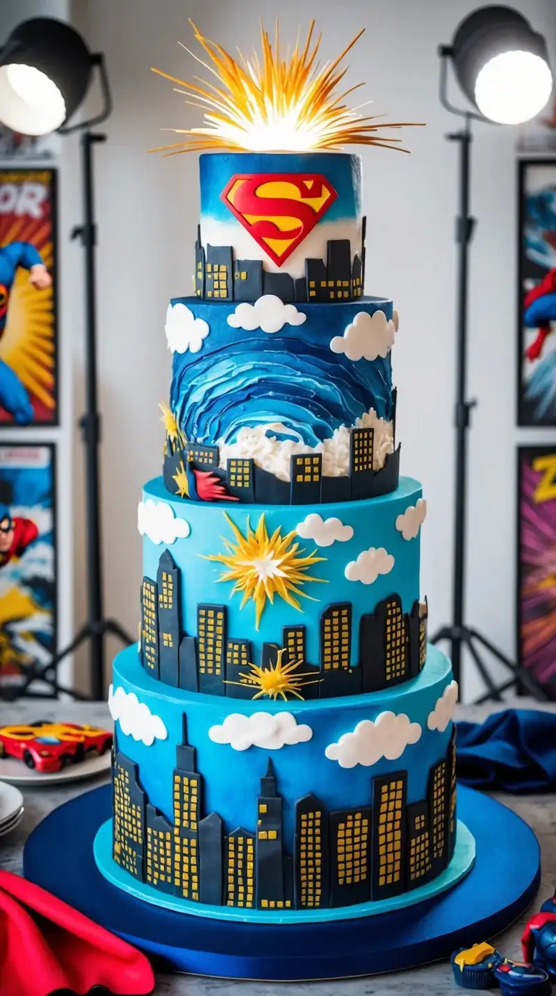 How thrilling to see a cake inspired by superhero stories! Each tier tells part of the tale, igniting imaginations. Friends start discussing their favorite superheroes, thrilled to see their stories unfold. “I want to be just like him,” one child might say, eyes wide with wonder.