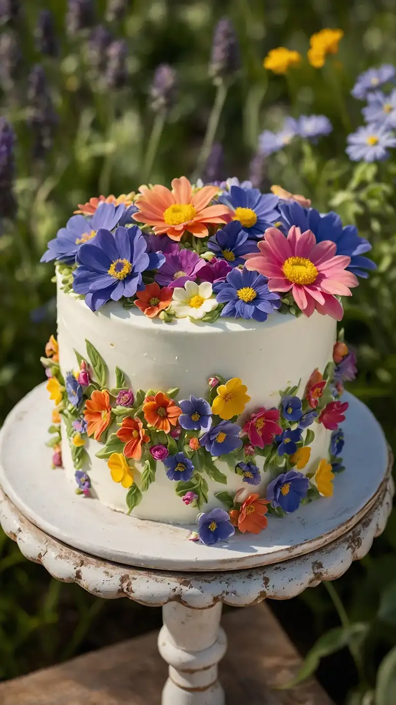 Think about a cake bursting with colorful flowers. Each bloom represents a memory—a picnic under the sun or a quiet evening with friends. Tiny petals dance around the layers, creating a soft, enchanting garden on your table.