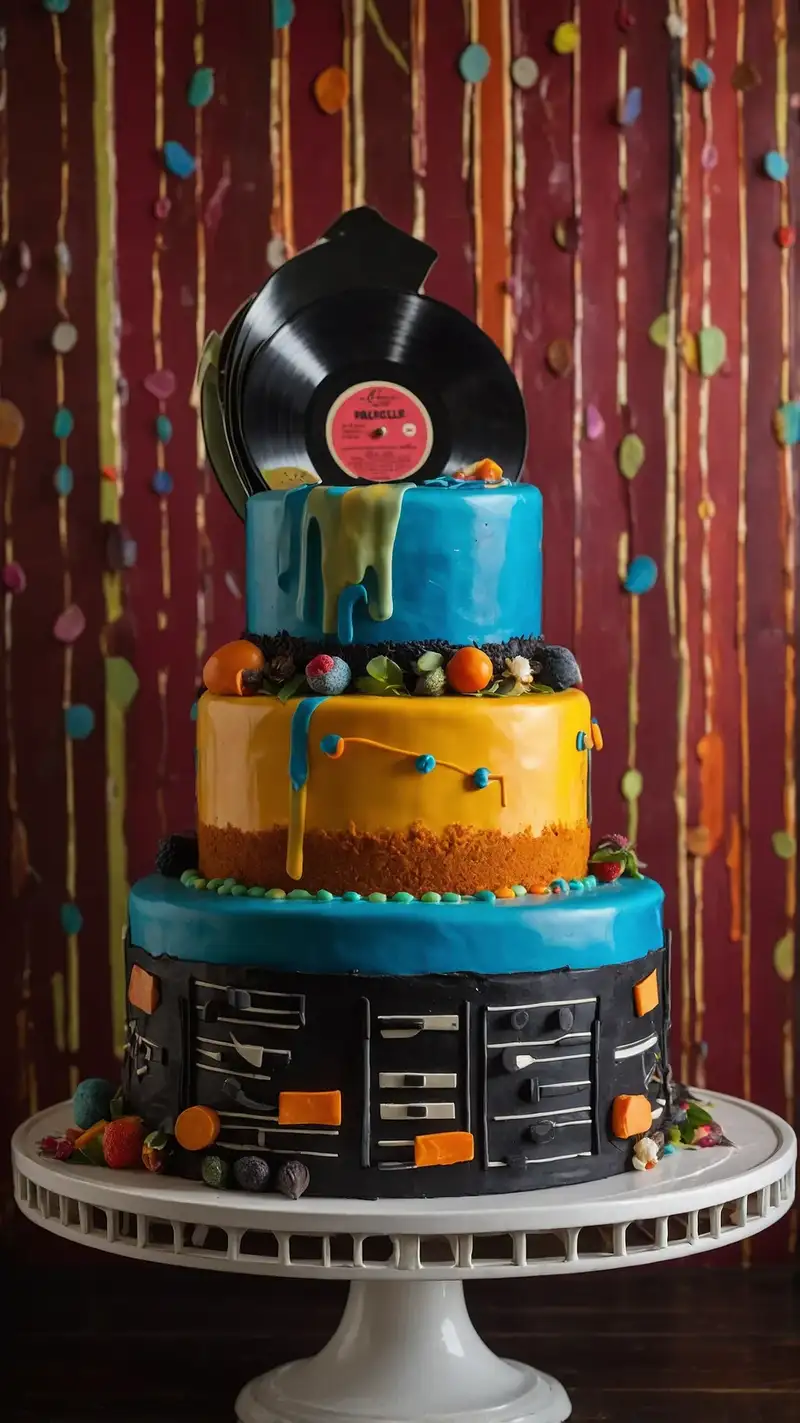 Think of a cake that sings melodies of the past. Each layer represents a different decade of music. You can almost hear the tunes of yesteryears echoing through the party.