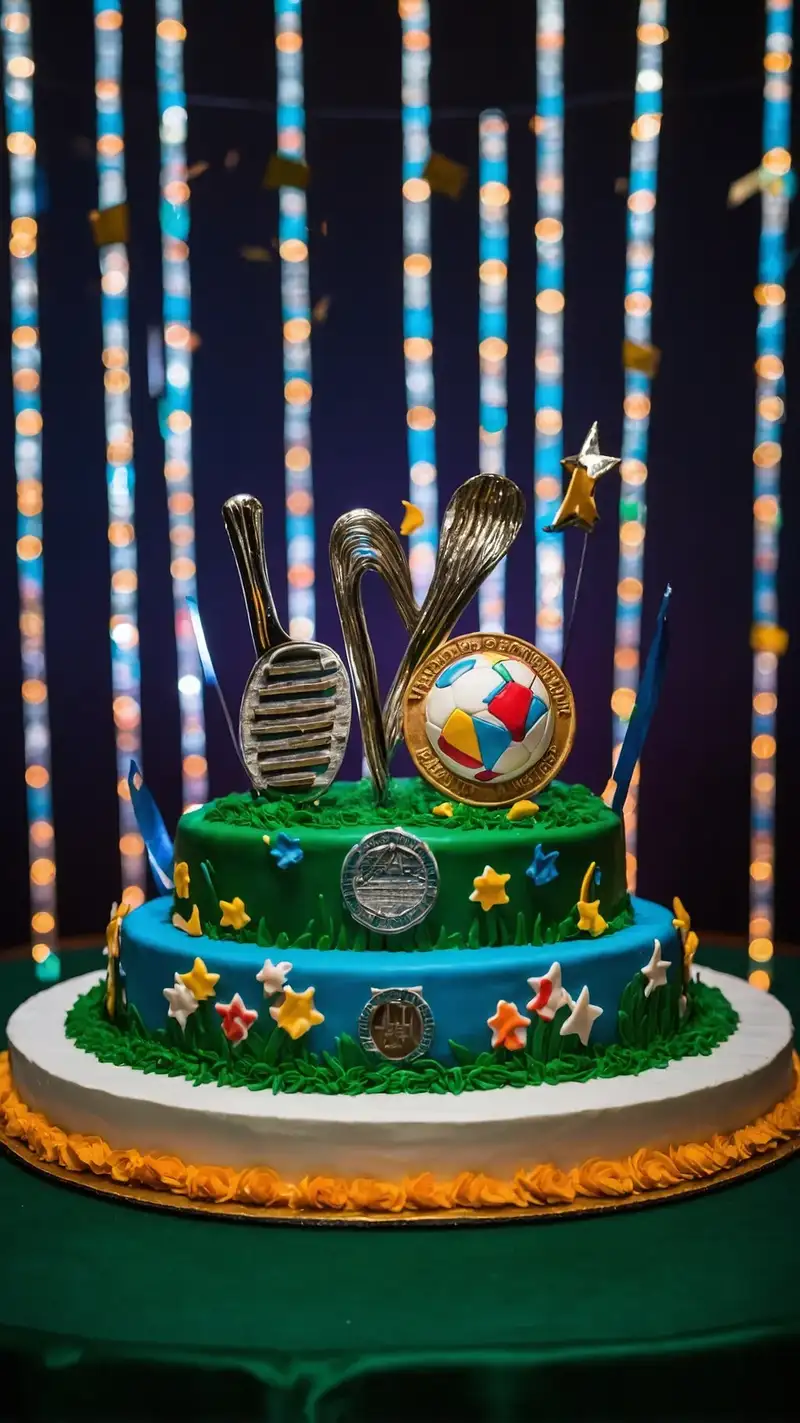 Envision a cake that glimmers like a stadium. Edible trophies and medals adorn the sides. It’s a tribute to a life filled with active moment.