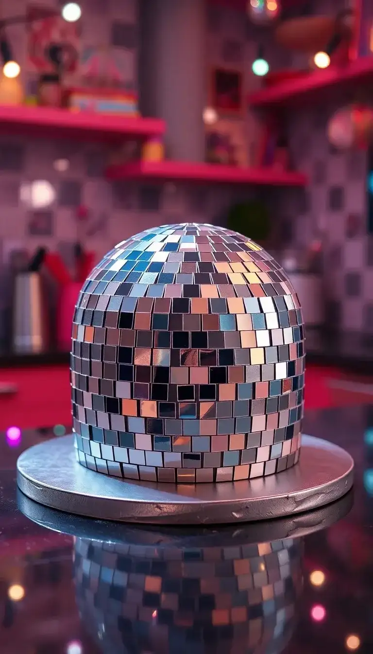 A "Nice For What Disco Cake" is a fun and sparkly treat that looks like a disco ball! It shines with many little tiles that reflect light, just like a real disco ball at a party. This cake is perfect for celebrations where everyone dances and has a great time. The round shape makes it look extra cool, and it can be the star of the dessert table. Friends will love taking pictures with this cake because it brings a party vibe. Everyone can enjoy a slice while dancing to their favorite songs!