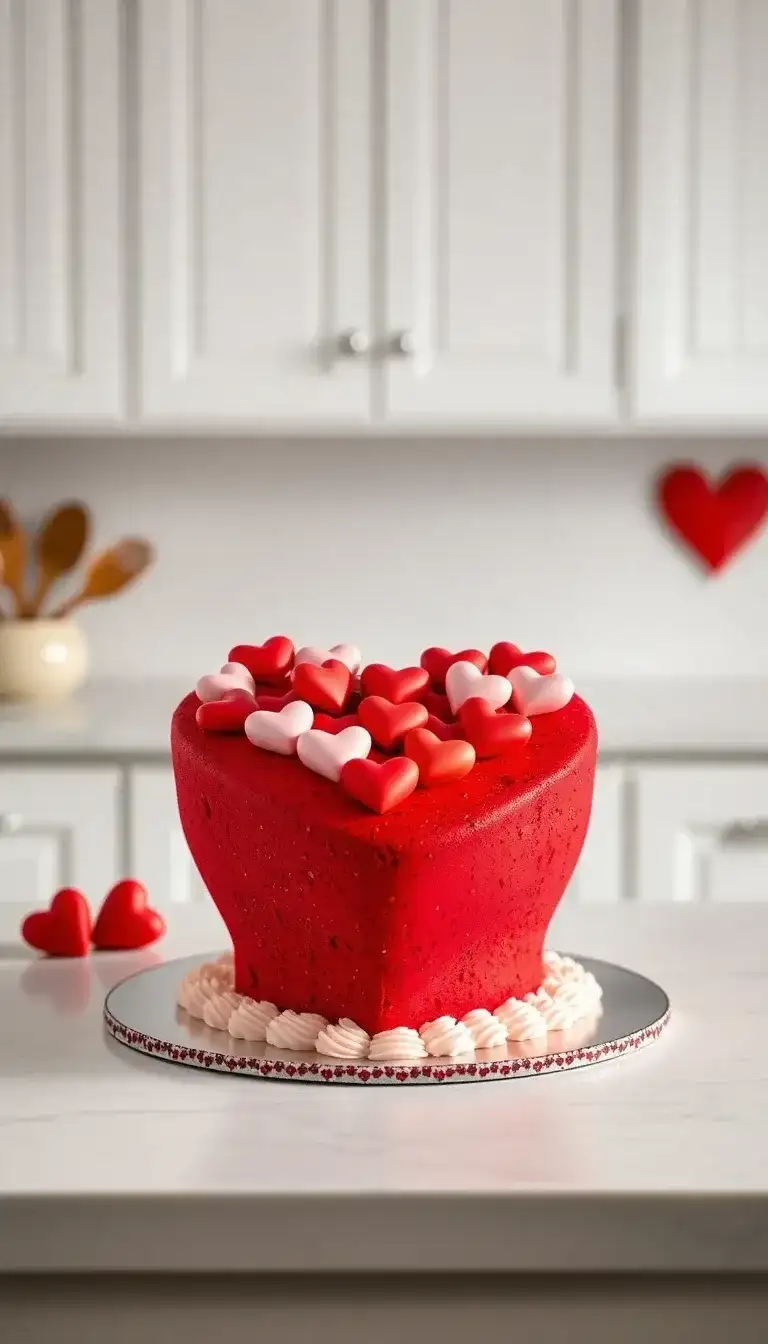 The "Certified Lover Boy Heart Cake" is a fun and sweet treat that looks like a big, red heart. It has lots of tiny heart decorations on top, making it perfect for showing love. The cake is bright and colorful, catching everyone’s eye. It sits on a shiny plate with pretty edges. This cake would be great for a birthday party or a special celebration. Everyone would love to share a slice of this lovely cake!