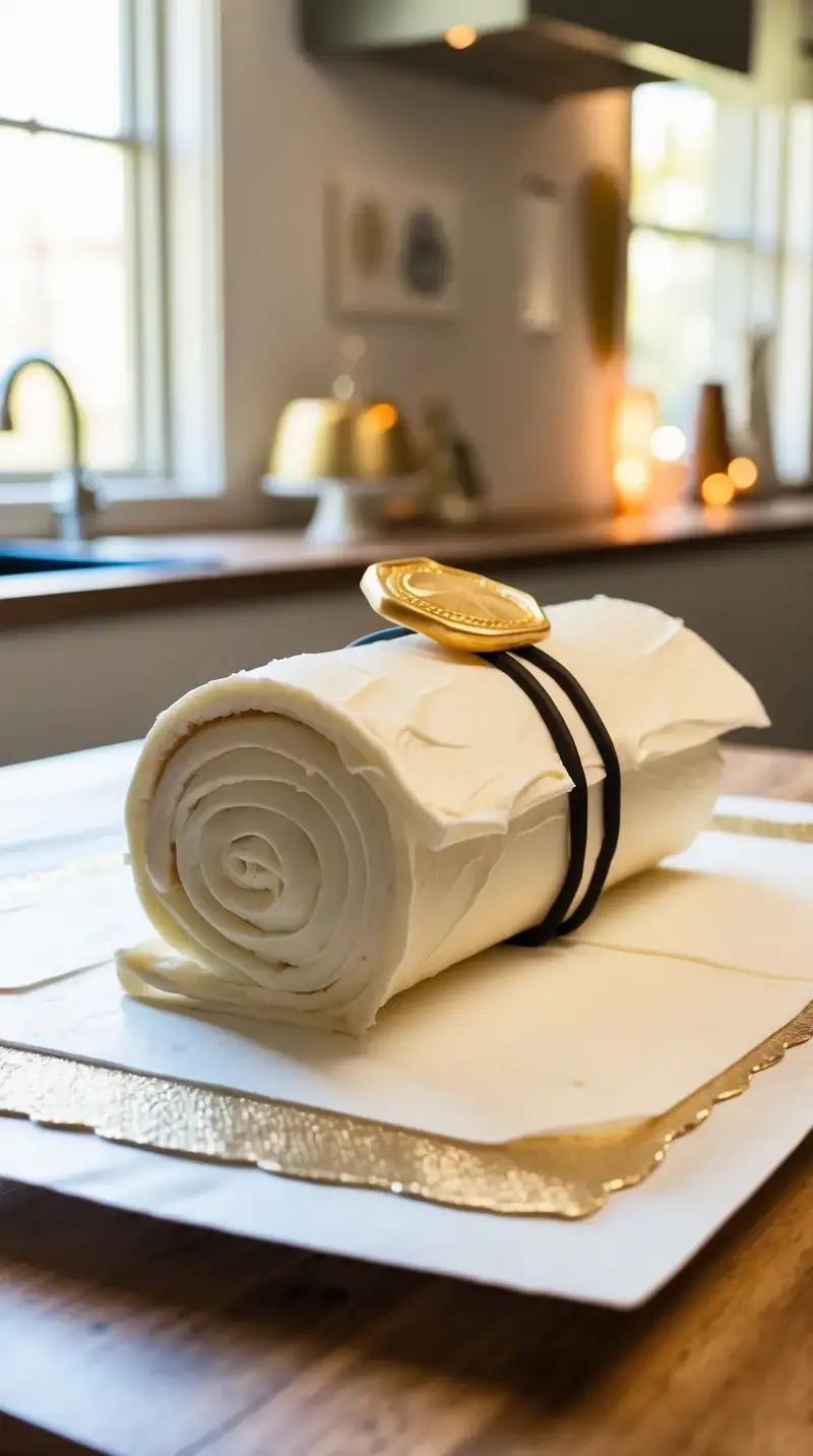 Picture this: a round cake with smooth frosting, that’s topped with a tiny edible graduation cap. It’s like the hero of the celebration. "Wow, that looks just like my cap!" shouts your friend. The excitement sparkles in the air. - Diploma Roll Cake