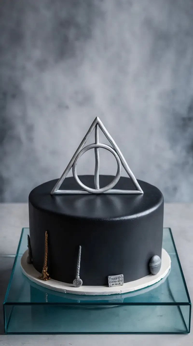 Imagine a cake designed with the iconic Deathly Hallows symbol, draped in elegance. Friends observe its intricate detail, pondering its meaning. “It’s so cool!” someone remarks, tracing the symbol with their finger, clearly intrigued.