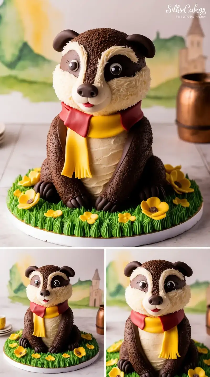 Think about a charming cake that brings to life the gentle spirit of Hufflepuff House. The warm, yellow colors and the adorable badger create a cozy atmosphere. Friends might snuggle closer to the cake as they enjoy its delightful flavor. “It feels just like home,” someone whispers.