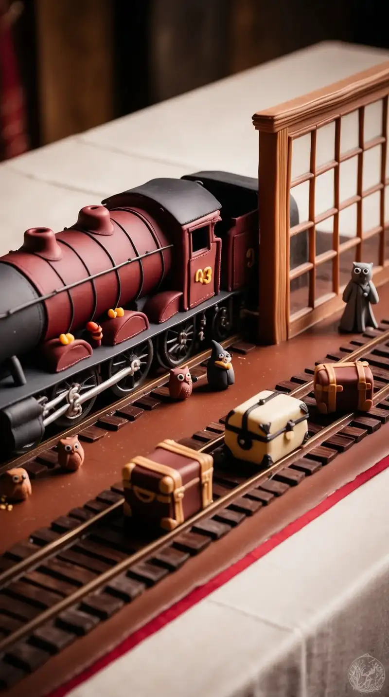 Visualize a train zipping down a chocolate cake platform, ready to whisk you away to Hogwarts. The tiny Hogwarts Express, complete with shining wheels, seems to be puffing little clouds of fondant smoke. As you add fondant hills and fluffy blue skies, laughter rushes through the room. “Look! There’s Hogwarts!” someone might point, eyes wide with excitement, as they imagine riding the train.
