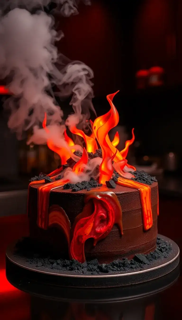Jogo's Volcano Spice Cake is a fun treat inspired by Jujutsu Kaisen! It looks like a real volcano with bright red flames and dark, rocky chocolate. The cake is bursting with colors and even has smoke rising from it, making it look super cool. Just like in the show, it brings excitement and adventure. Friends would love to share a slice of this fiery creation at a birthday party or a special gathering. This cake is sure to be the center of attention, just like the thrilling battles in Jujutsu Kaisen!