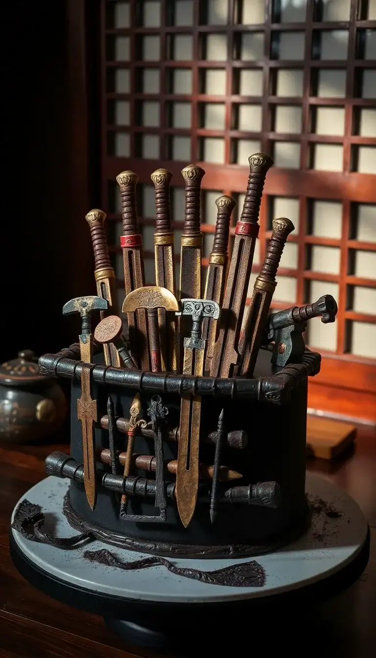Maki's Cursed Tools Arsenal Cake is a super cool treat for fans of Jujutsu Kaisen! This cake looks just like a box filled with magical weapons. There are swords and special tools, all decorated in amazing colors. Each piece shows off the power of the characters in the story. The cake stands tall and looks like it belongs in a thrilling adventure. It’s perfect for celebrating a birthday or just having fun with friends. Everyone would love to see this unique cake at a party!