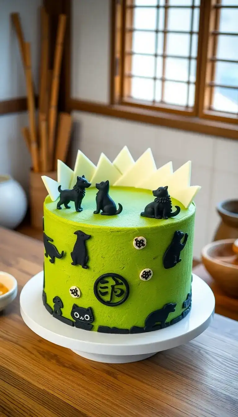Megumi's Shikigami Matcha Cake is a fun and colorful treat! It is inspired by the exciting world of Jujutsu Kaisen. The cake is bright green, just like matcha, and has cute little shikigami figures on top. These figures look like playful animals that can help Megumi in battles. There are also cool decorations that make the cake look magical. Everyone would love to see this cake at a party! It brings the adventure of Jujutsu Kaisen right to dessert time, making it a special treat for fans.