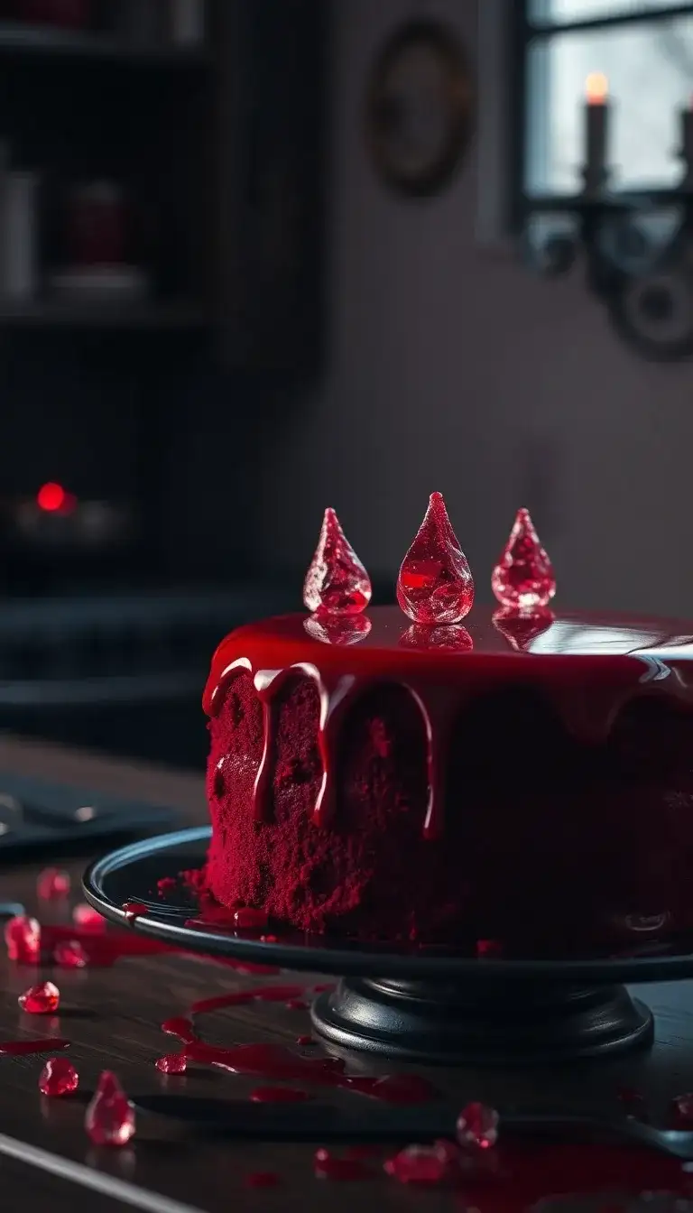 Choso's Blood Manipulation Cake is a super cool dessert inspired by the anime Jujutsu Kaisen! This cake is bright red, just like blood, making it look really exciting. It has a shiny, dripping top that makes it seem like magic is happening. On top of the cake, there are little red drops that look like they could be from a spell. The whole thing is surrounded by red splashes, adding to its fun and spooky vibe. Everyone would want to take a slice of this awesome cake at a party!
