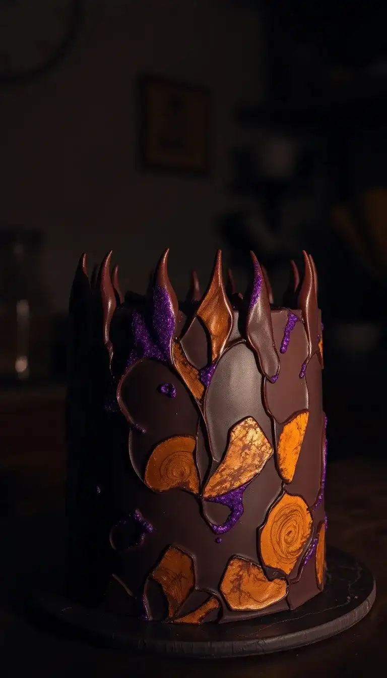 Have you ever seen a cake that looks like a magical treasure? The Sukuna's Fingers Dark Chocolate Cake is just that! It has dark chocolate all over, making it look rich and mysterious. The cake is decorated with bright orange and purple shapes that remind us of cool powers from Jujutsu Kaisen. The sharp edges on top look like spooky fingers reaching out. It's a cake that makes you want to dive into an adventure with your favorite characters! Perfect for a party or a fun treat, this cake is sure to impress everyone who loves anime and sweets.