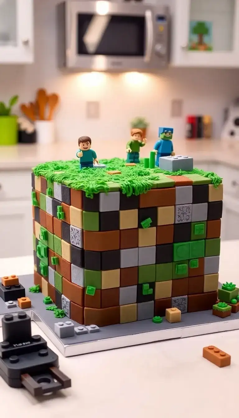 The Lego Minecraft World Cake is a super fun treat that looks just like a block from the game! It’s made with colorful pieces that remind us of grass, dirt, and stone. Tiny Lego figures stand on top, ready for an adventure. There are even little green blocks and plants around them! This cake is not just a dessert; it’s a cool way to celebrate a love for Minecraft. Everyone would want a slice of this awesome creation!
