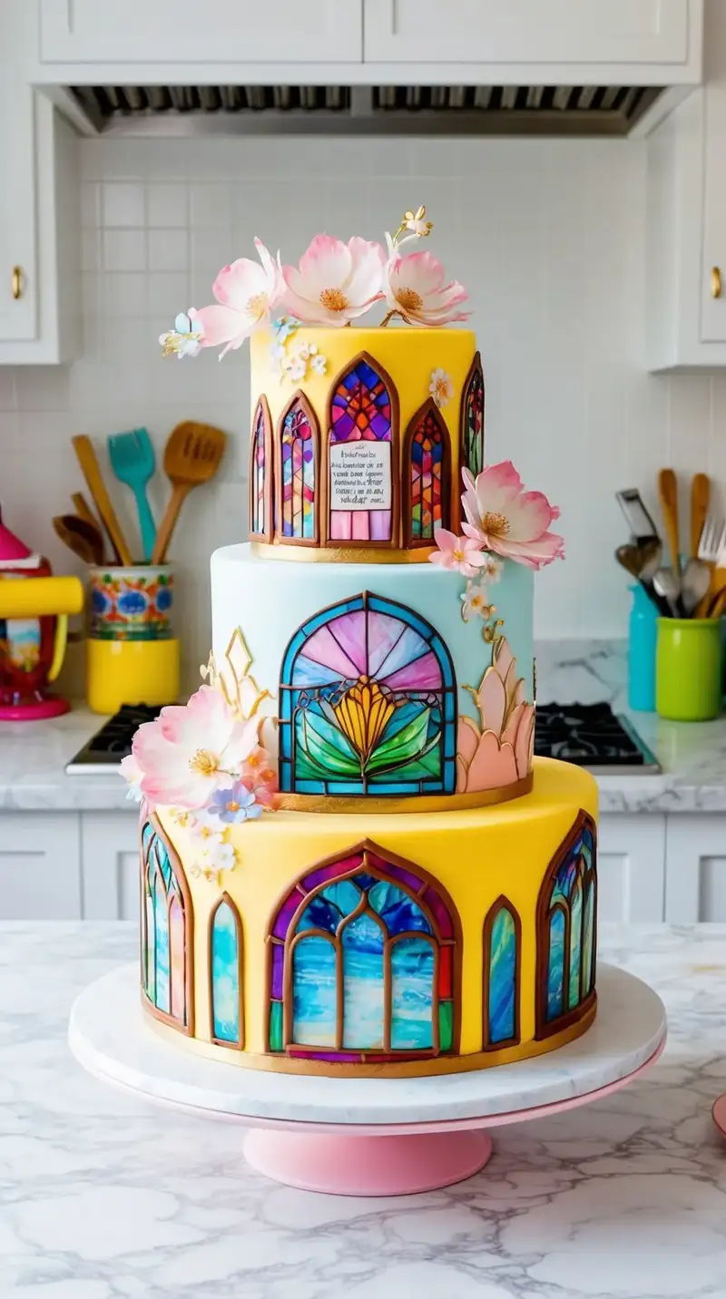 The Stained Glass Princess Cake dazzles with colors that catch the light beautifully. Each tier tells a story, with designs that resemble beautiful glass windows from ancient castles.