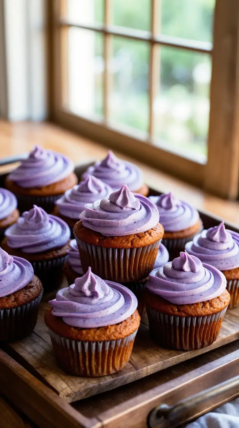 Visualize cupcakes filled with vibrant purple goodness. Each bite carries the warm essence of sweet potatoes, topped with creamy lavender frosting. They call out to you, begging you to take a taste.