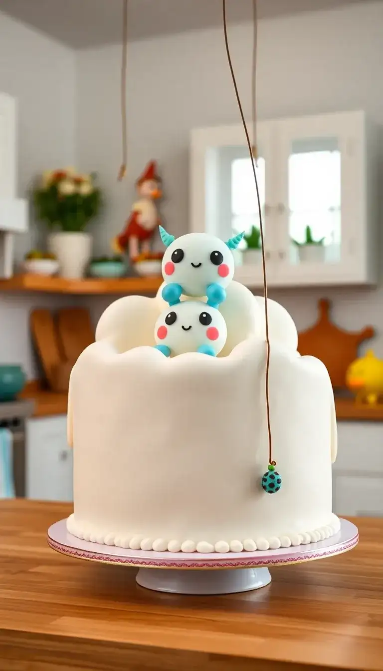 Lakitu's Cloud is a fun and magical cake inspired by the Mario game world! This cake looks fluffy and white, like a big cloud floating in the sky. On top, there are cute little figures that look like Lakitus. They are smiling and ready to race! The cake has a shiny finish, making it look extra special. Just like in the game, these characters can help Mario on his adventures. This delicious treat is perfect for a birthday party or any fun celebration! Everyone would love to take a slice and enjoy the fun of Mario's world.