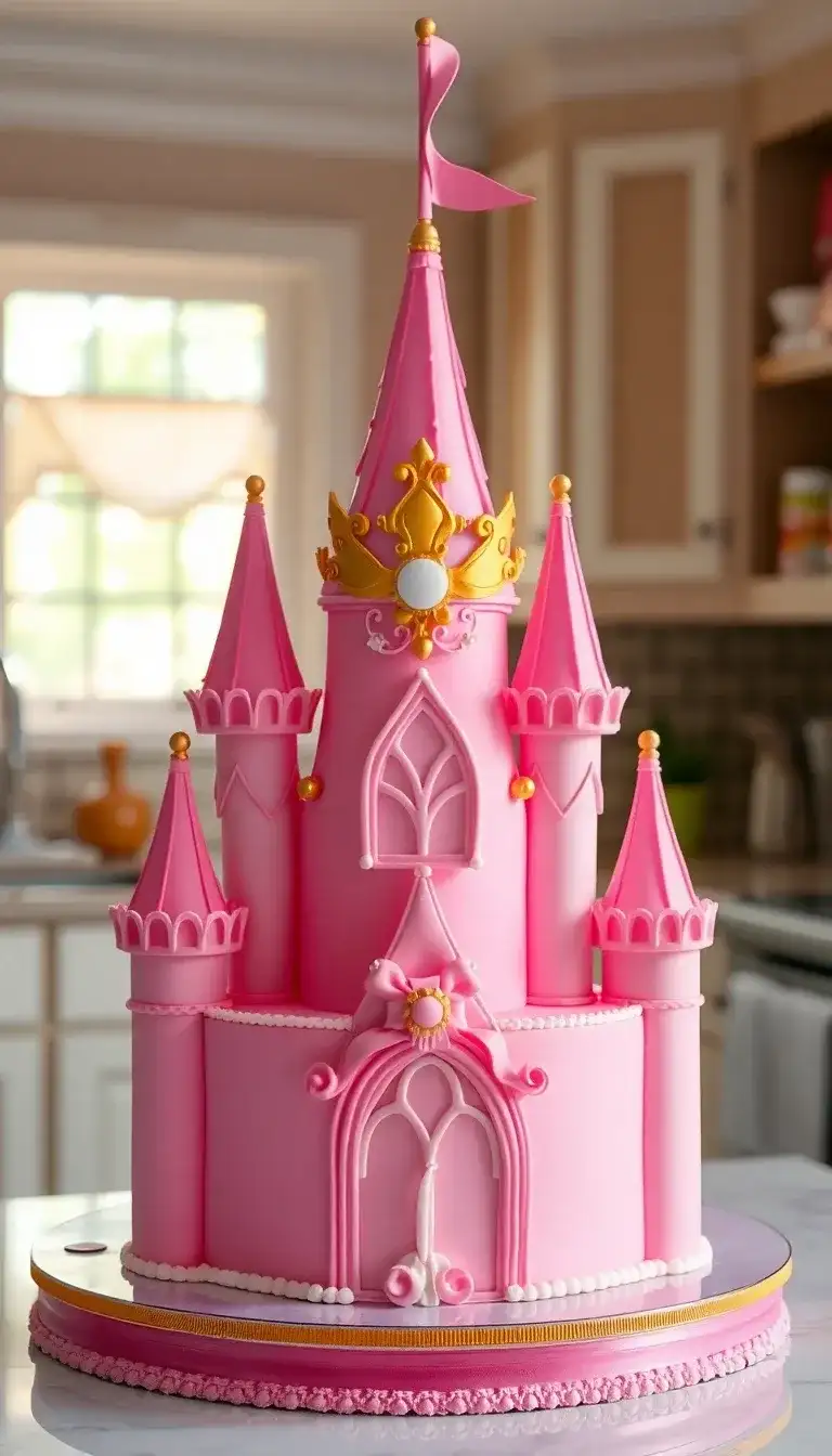 The Princess Peach Castle is a magical place full of fun and adventure. It stands tall with its pink walls and shiny towers, just like in the Mario games. The castle has beautiful windows and a lovely crown on top, making it look super special. Imagine celebrating a birthday here with friends, surrounded by yummy treats and games. Everyone would feel like a hero in this enchanting castle, ready to take on any challenge. It’s a perfect spot for a grand party filled with laughter and joy!
