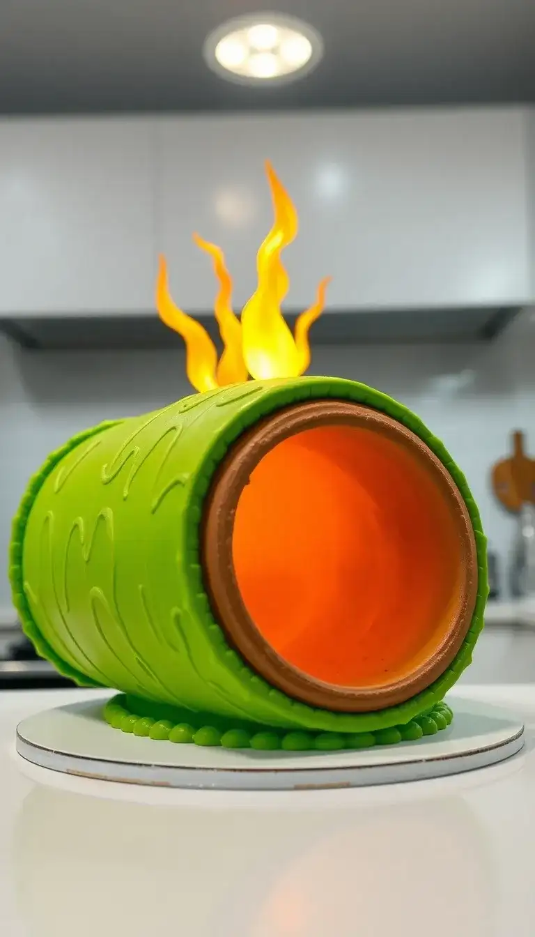 The Warp Pipe is a cool green tube from the Mario games. It looks like it can take you to different worlds. The bright flames on top make it seem super exciting! Mario and his friends use these pipes to travel quickly. Inside, you never know what adventure awaits. Maybe you’ll find coins, power-ups, or even a surprise! This cake is a fun way to celebrate those adventures. It combines tasty treats with the magic of the game!