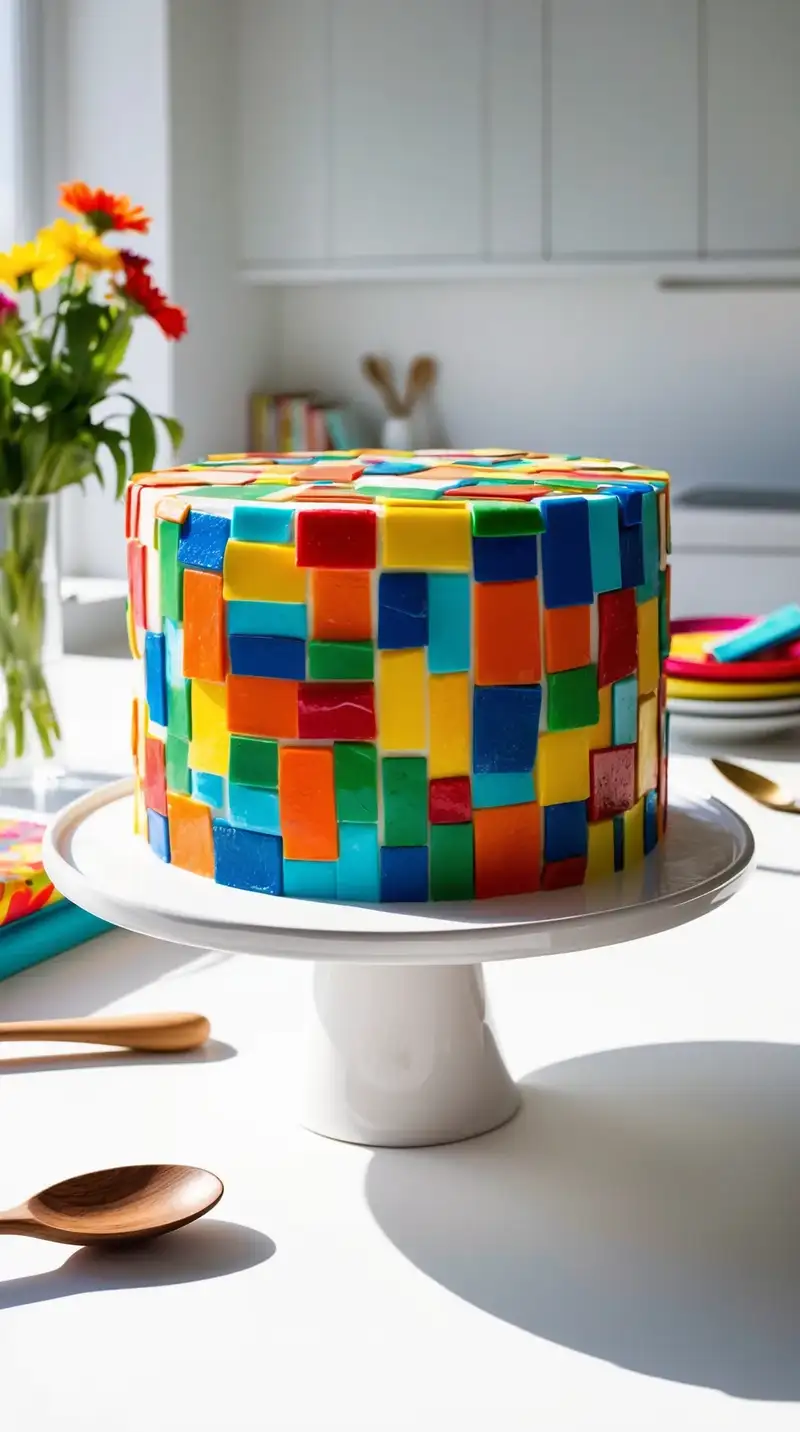 A cake that looks like a beautiful mosaic draws you in. Its vibrant colors catch every light, and you can hardly believe it’s made of cake. “This is stunning!” someone exclaims, admiring the detailed patterns.
