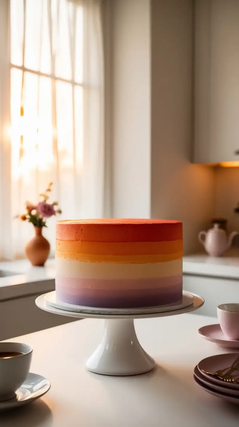 An ombré sunset cake catches your eye with its soft gradient of colors. It’s serene, like watching the sun dip below the horizon. “This looks so calming!” a friend remarks. You can’t help but agree.