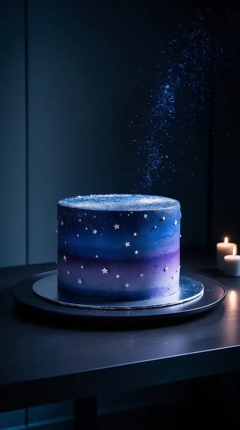 You feel drawn to a cake designed like a starry night. The shades of blue and purple twinkle under the light, mesmerizing you. “This really looks like the night sky!” someone gasps.