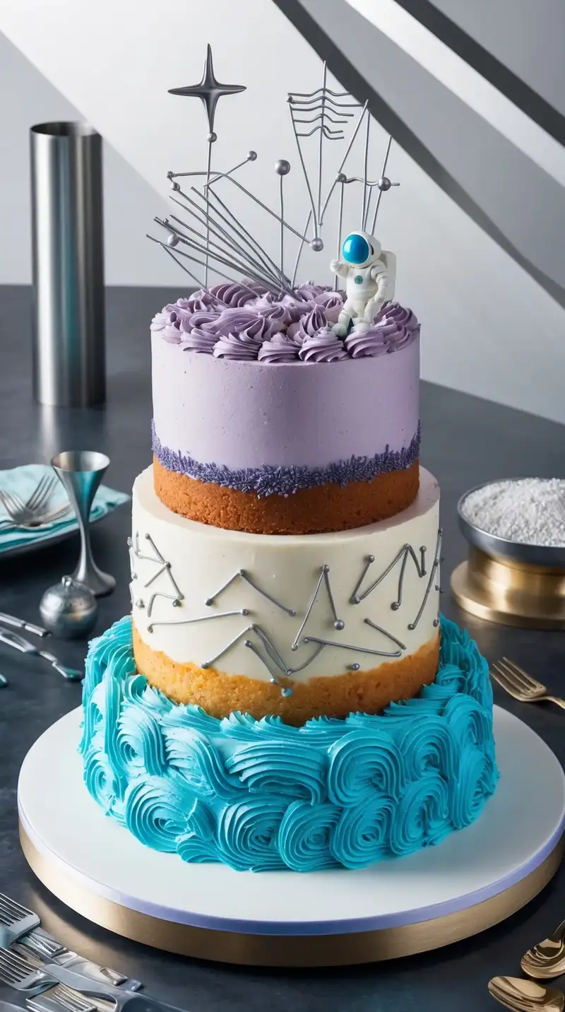 Decorations are avant-garde, with geometric shapes, edible circuitry patterns, and a tiny fondant astronaut perched on the side, exploring the unknown. The Aquarius Innovation Cake is more than just dessert—it’s a celebration of creativity, originality, and the endless possibilities of the future.