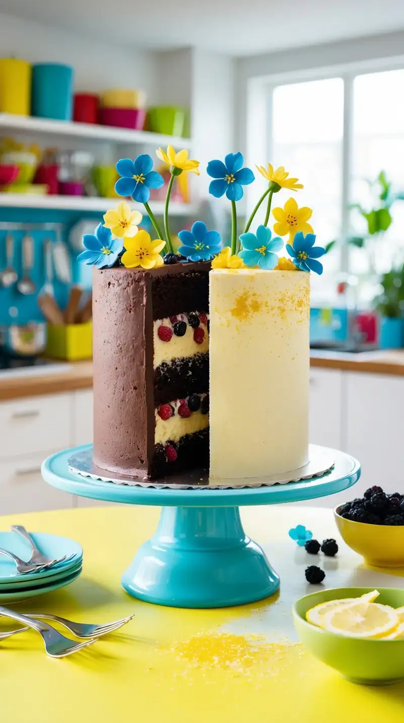 What if the cake had two faces? The Gemini Duality Delight Cake surprises with its layers of flavor. One side shows rich chocolate, dark as midnight. It stands strong, with berries tucked inside, adding a burst of color. The other side? A sunny lemon sponge, light and fluffy. "It feels like a party in my mouth!" you might giggle, tasting the blend.