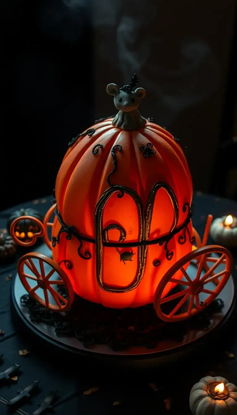 Each tier offers a clue to the magic inside. “Can you just imagine Cinderella dressed in a zombie gown?” you whisper to yourself, giggling at the thought. Little fondant mice peek out, and any guest who sees this cake might just feel a shiver of excitement. With every sprinkle and swirl, the pumpkin carriage becomes a piece of enchanting art!