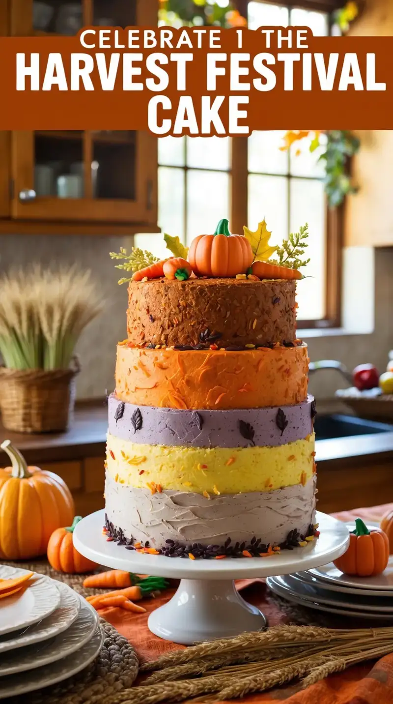 Enjoy the joyous season with a Harvest Festival Cake! This creation bursts with colors and textures that remind you of the fall. Layers of carrot, pumpkin, and lemon lavender come together for a delightful treat. Friends gather 'round, feeling happy to celebrate nature’s bounty. “This is a perfect way to embrace the season!” someone declares, taking in the delightful sights.