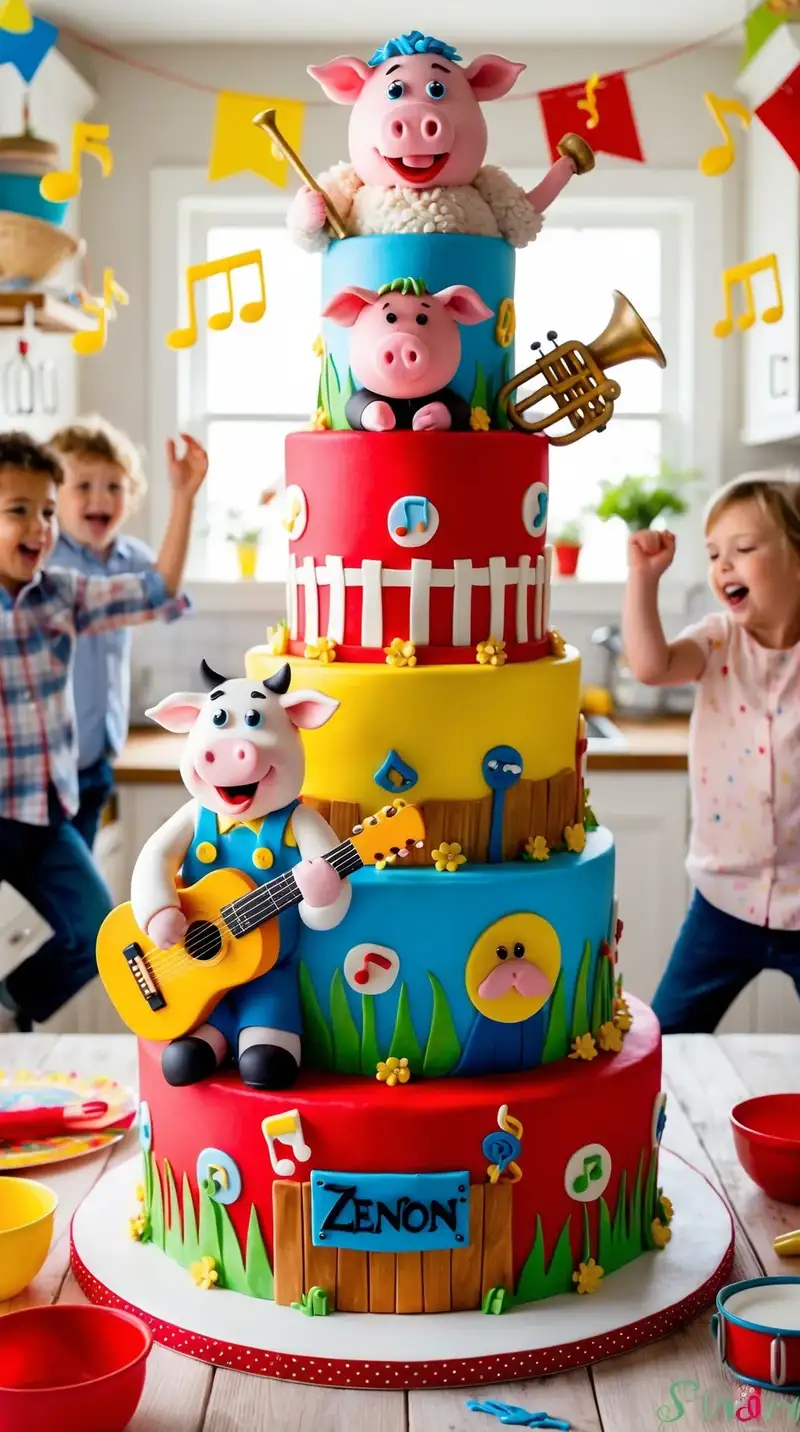 Can you hear the music playing? At the bottom, a cow strums its guitar. Right above it, a pig blows into a trumpet, while a sheep hums a lovely tune. Zenon’s Musical Farm Cake is not just a feast for the eyes but also for the ears. Each tier is decorated with bright colors and fun instruments. Kids can't help but dance around the cake, laughing and tapping their feet. It feels like a farm party where everyone gets a chance to join in the fun.